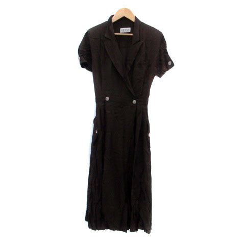 【中古】モガ MOGA ワンピース オープンカラー 半袖 ロング丈 ダークブラウン /HO5 レディース