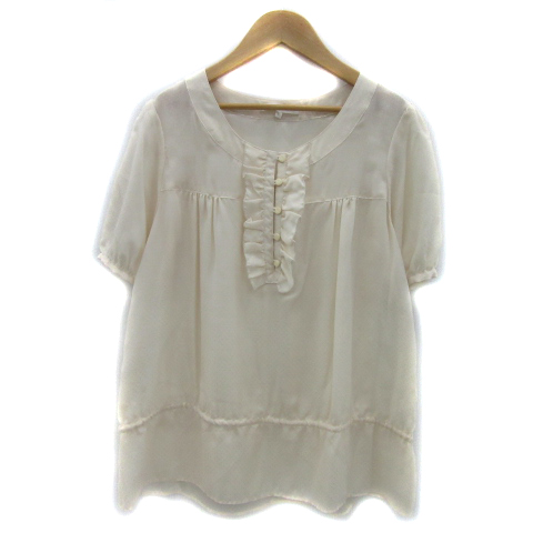 【中古】グローブ grove ブラウス シャツ 半袖 ヘンリーネック ドット柄 フリル L ライトベージュ /YS25 レディース