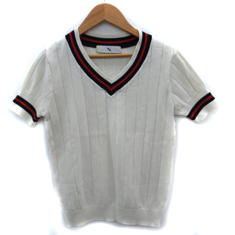 【中古】N.ナチュラルビューティーベーシック ニット セーター 半袖 Vネック M マルチカラー 白 ホワイト