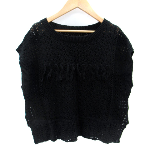 【中古】フォフス fifth ニットベスト ラウンドネック フリンジ M 黒 ブラック /SM15 レディース
