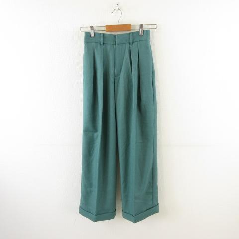 【中古】ジーユー GU インタックワイドパンツ ロング 緑 S *A649 レディース