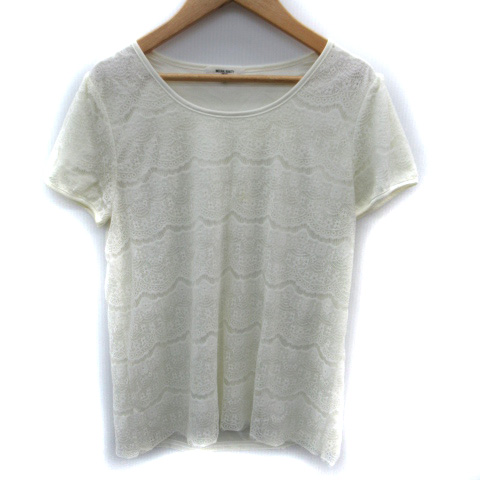【中古】ナチュラルビューティーベーシック カットソー 半袖 ラウンドネック レース M 白 ホワイト