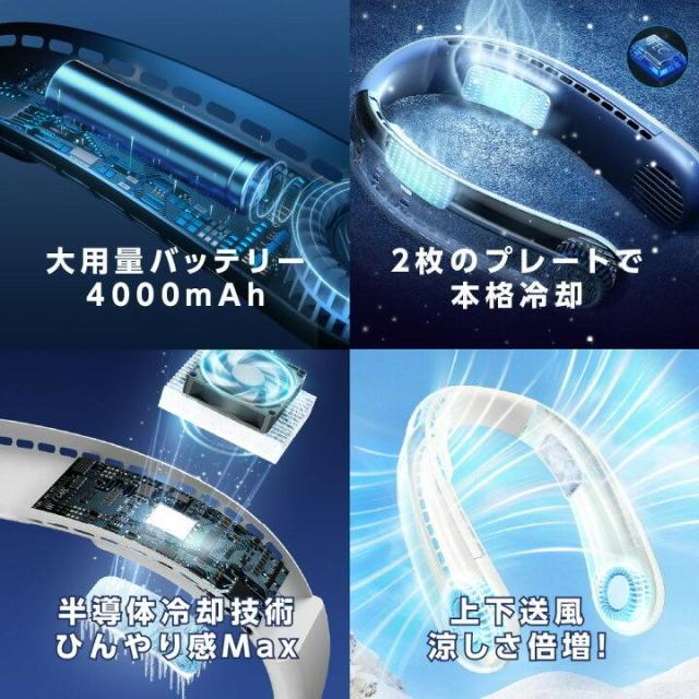 ネッククーラー 扇風機 ネックファン 首掛け扇風機 夏必須アイテム 軽量 おしゃれ ダブル冷却プレート付 ネックファン