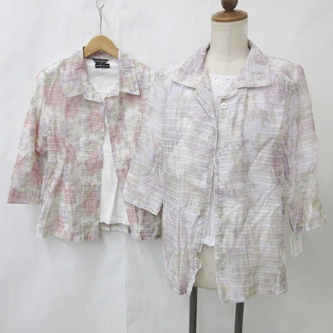 【中古】未使用品 Mocka giene アンサンブル 2枚セット ブラウス 7分袖 花柄 Tシャツ 5分袖 紫 ピンク M レディース