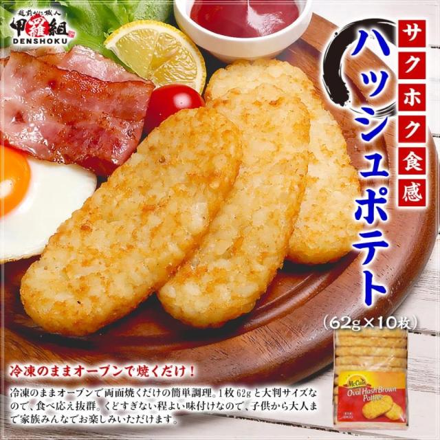 ハッシュポテト 620g(62g×10枚) ハッシュブラウン ハッシュド ポテト 惣菜 冷凍 スナック 朝食 お弁当 おやつ パーティ 運動会 人気 お手軽 小分け レシピ BBQ 時短