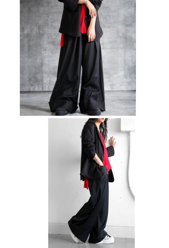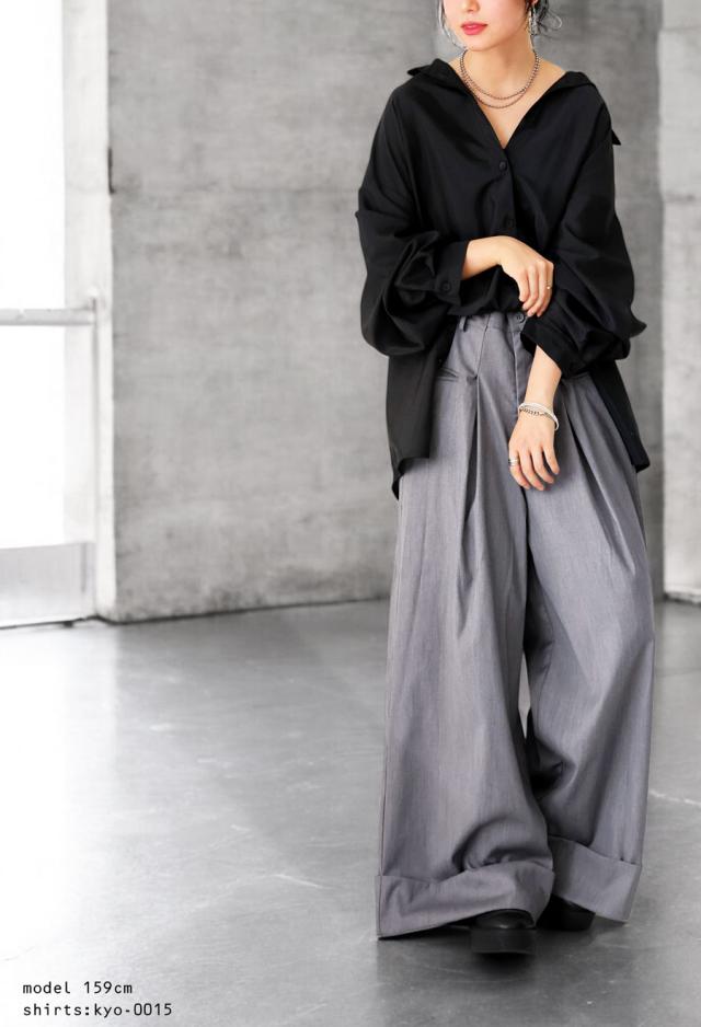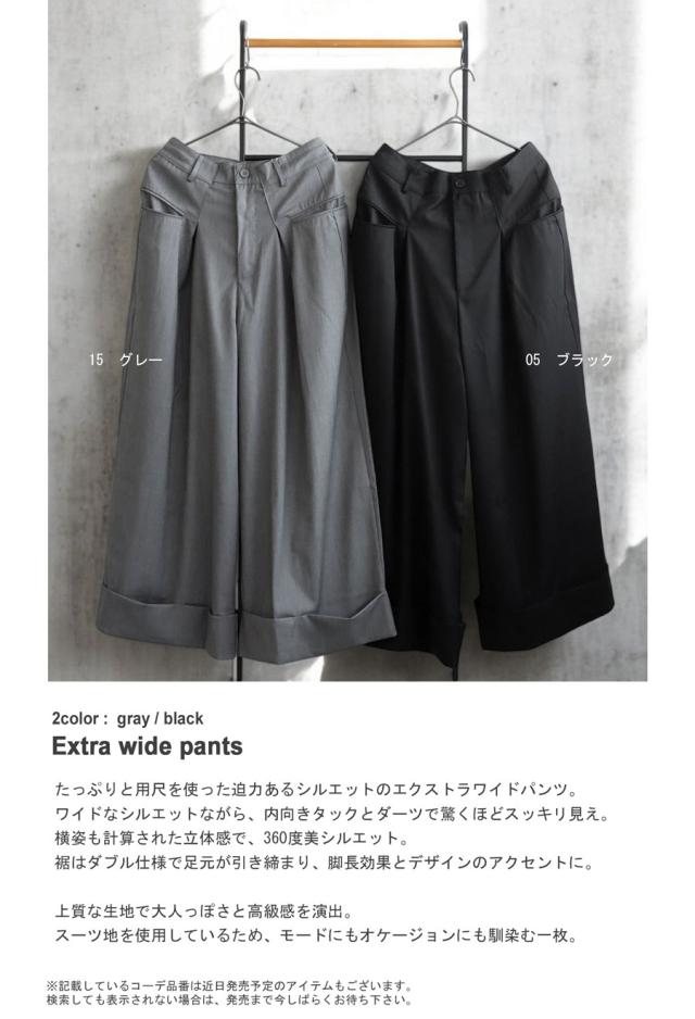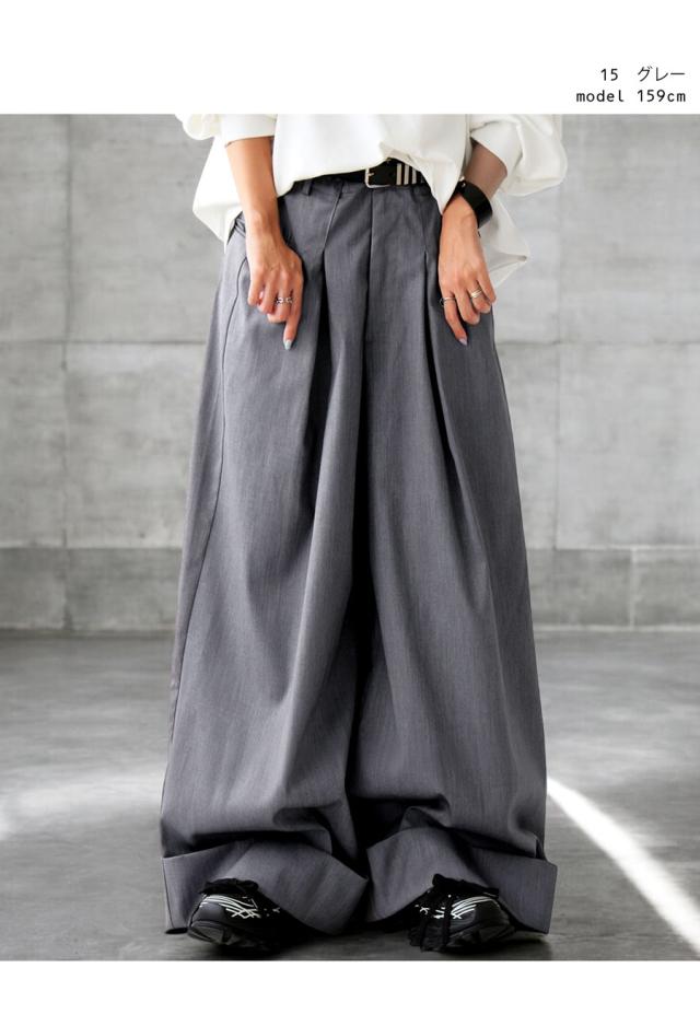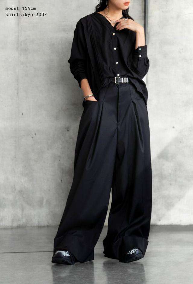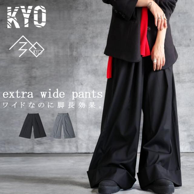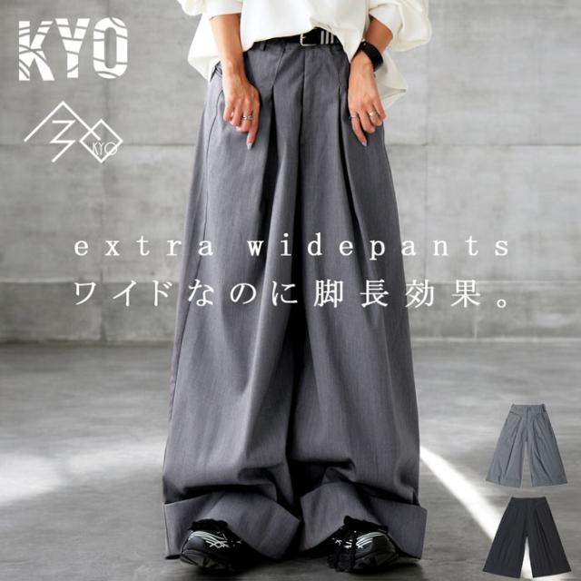 kyo-4011 ワイドパンツ ロング ワイド ダブル仕立て 無地 スーツ素材 エクストリーム ダブル仕立て 体型カバー 美脚 スーツ 通勤 オケージョン モード タック ポケット付き