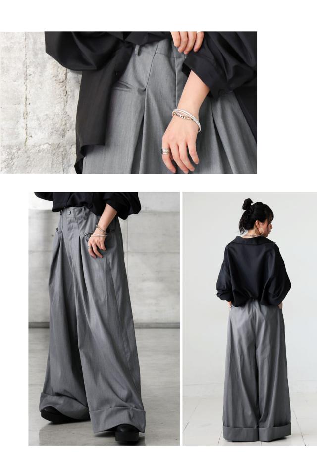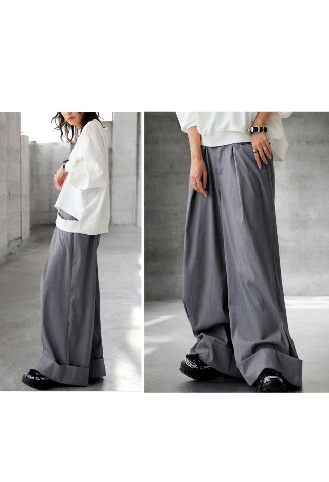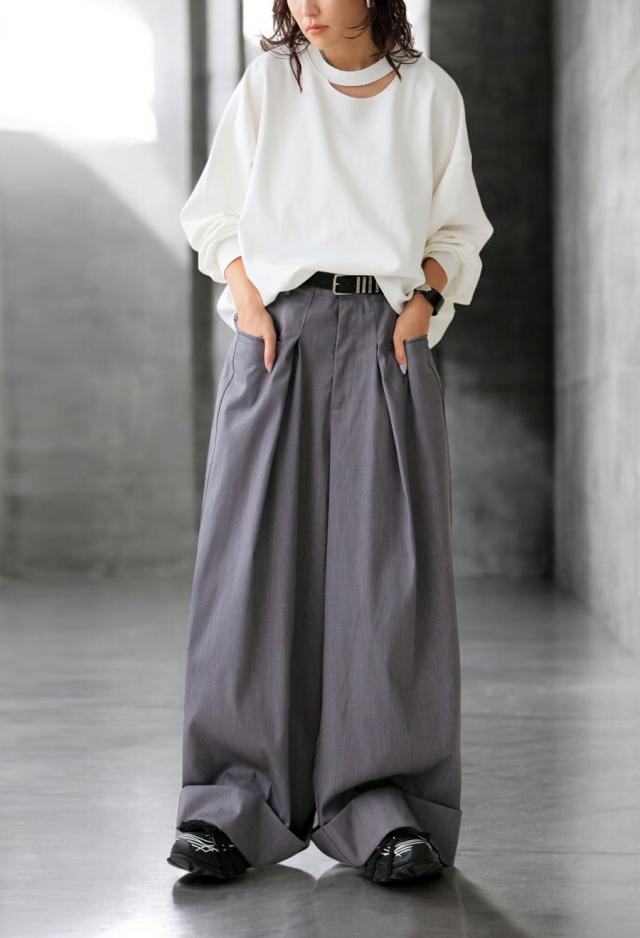 たっぷりと用尺を使いながらも、洗練されたシルエットを描くエクストラワイドパンツです。