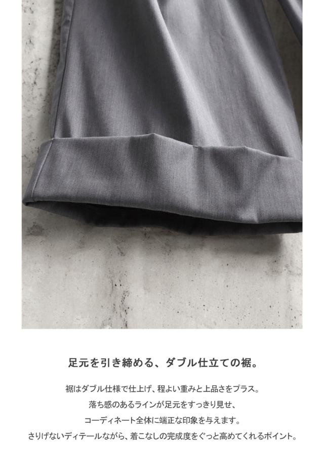 裾にはダブル仕立てを採用し、足元に重心を置くことで、スタイリッシュな脚長効果を演出。