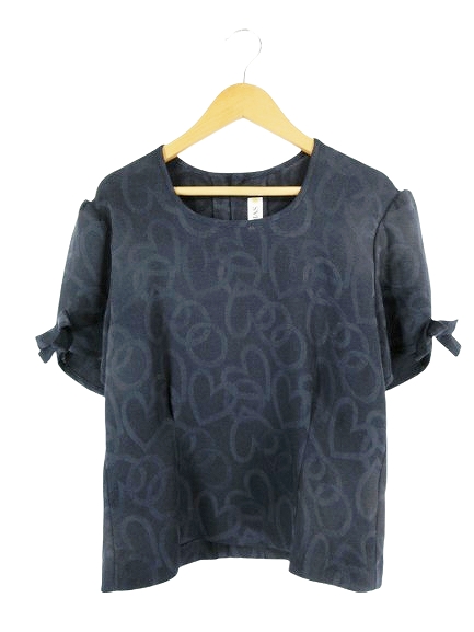 【中古】ディアス DIAS ブラウス バックボタン プルオーバー ハート柄 ネイビー QQQ レディース