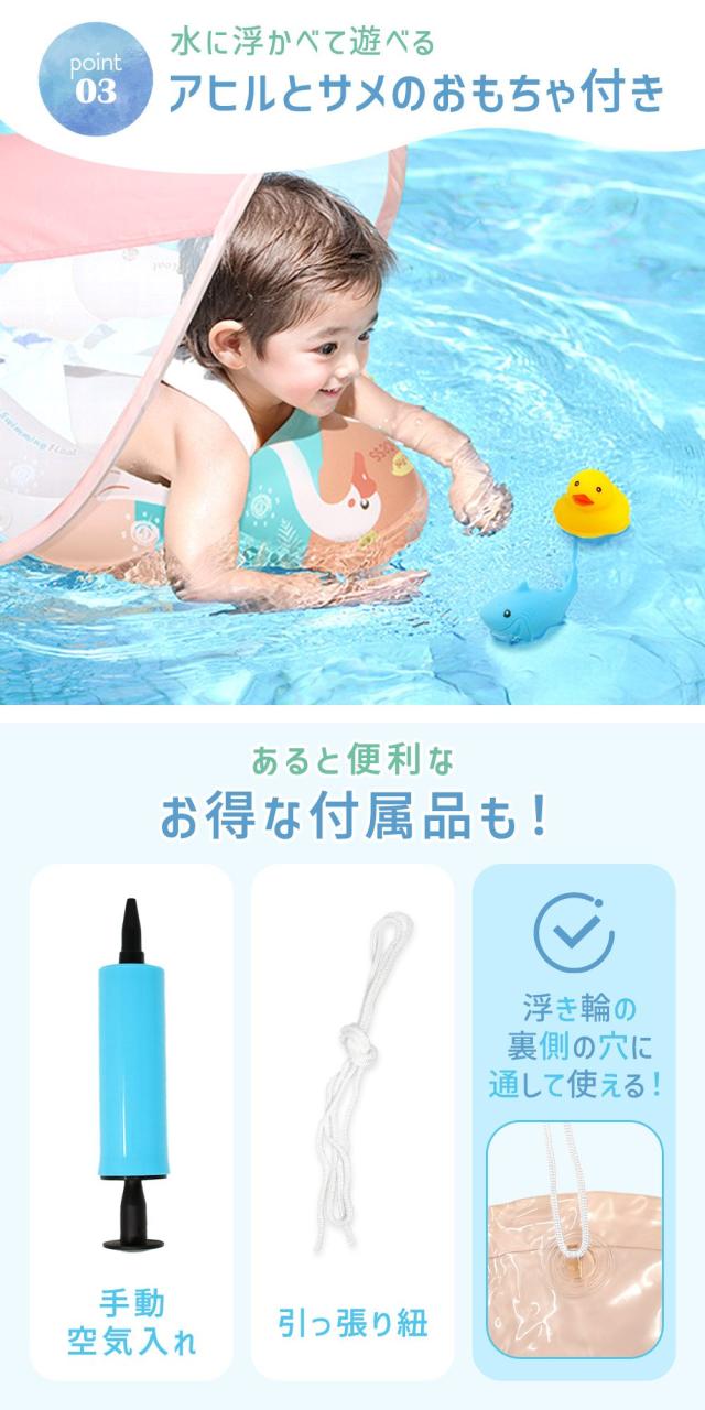【MILASIC公式】日よけ付き 浮き輪 子供 ベビー うきわ おまけ付き 屋根付き 日よけ スイミング 水遊び かわいい お風呂 水泳 水泳練習 知育玩具 おふろ 男の子 女の子 ポンプ付き バックル付 子供用 おもちゃ プレゼント プール スワン イルカ 日除けあり シェード付