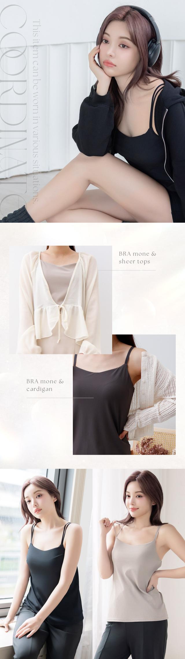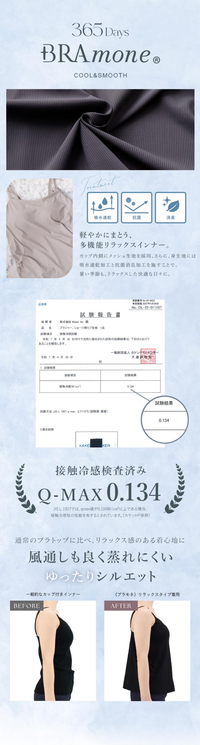 《ブラモネ》「ナチュ盛りtype」ノンワイヤー浅V型冷感リブキャミ 冷感 ひんやり 涼しい ノンワイヤー 楽ちん カップ付き ブラトップ キャミソール 【春新作】