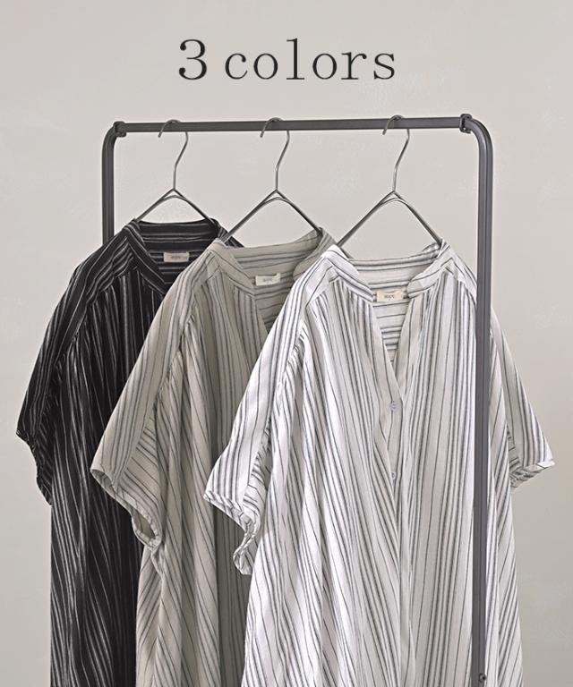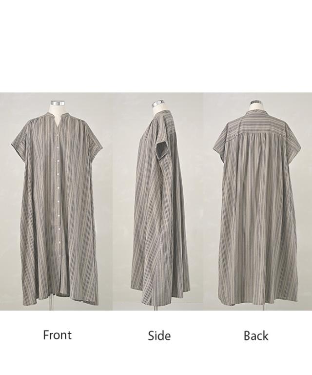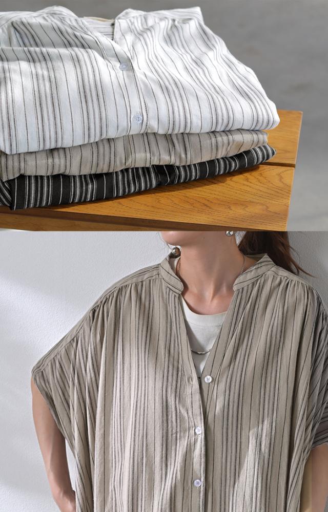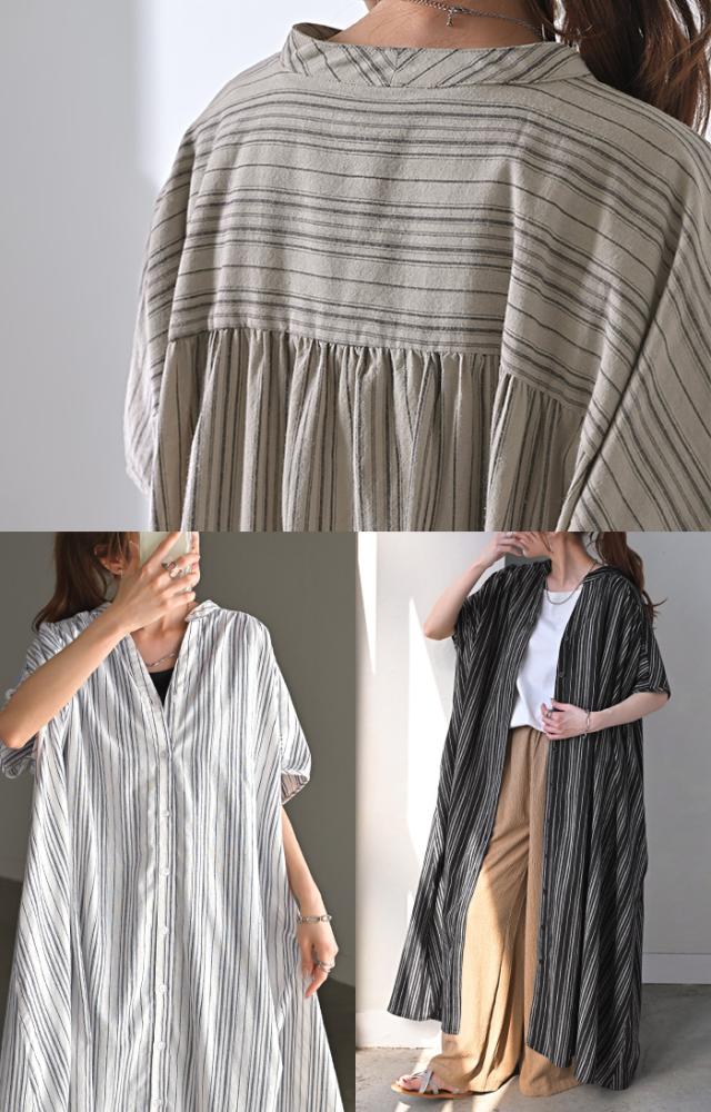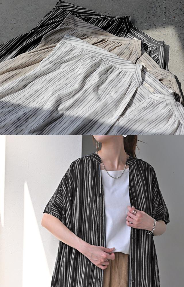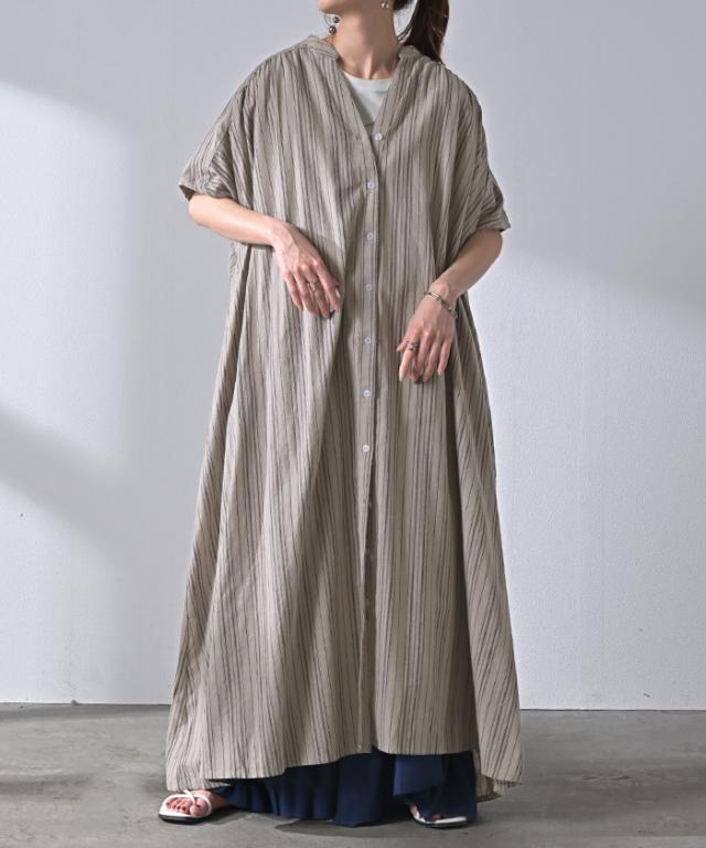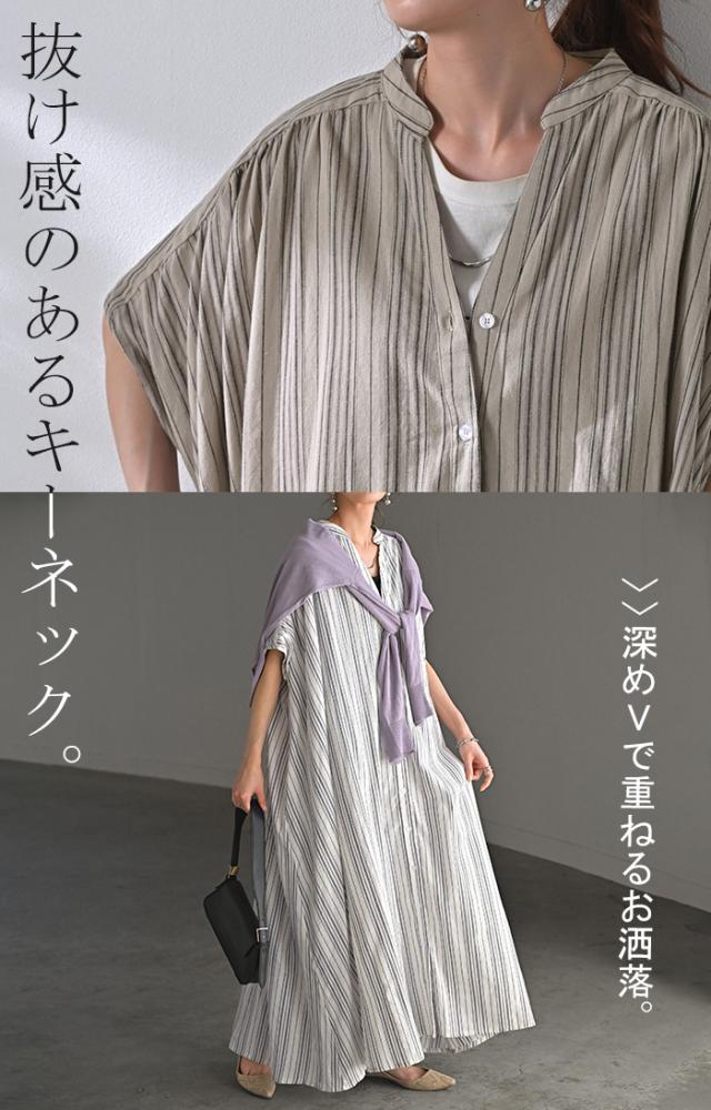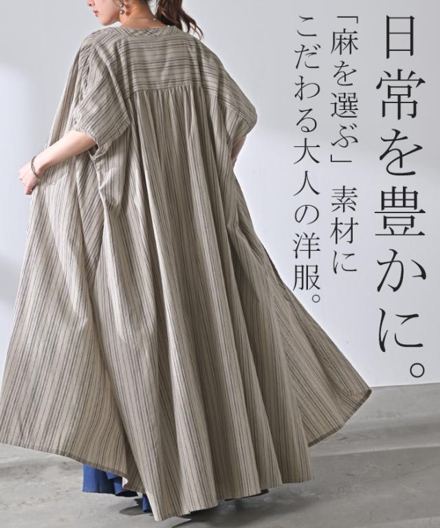 麻混のこなれた質感と存在感あるストライプが特徴的なシャツワンピースです。