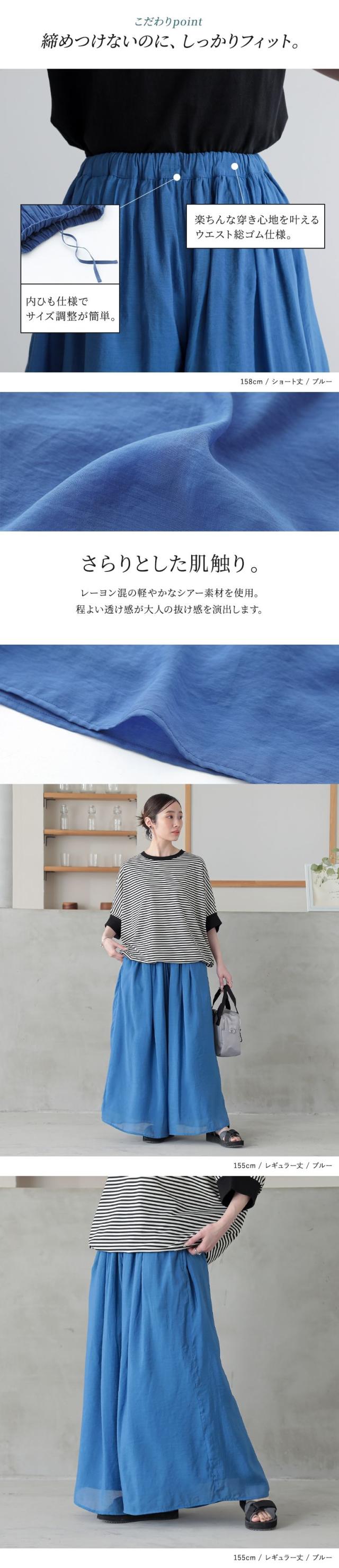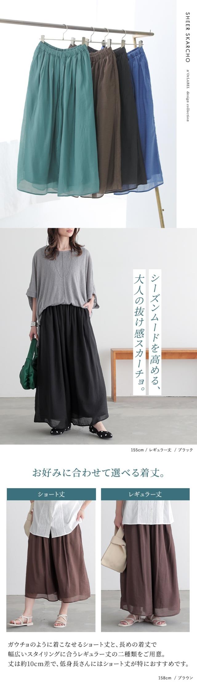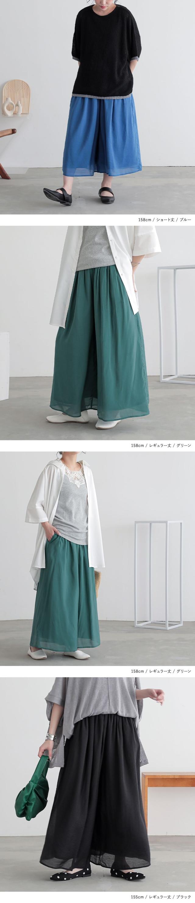 『選べる着丈シアースカーチョ』※メール便可※【10】[パンツ レディース ボトムス ロング丈 スカーチョ ワイド 選べる着丈 ショート丈 ウエストゴム ガウチョ ポケット 裏地付き 春 夏]