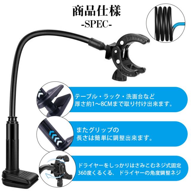 ドライヤー スタンド ホルダー ハンズフリー 両手が使える ドライヤー 固定 クリップ 立て ペット 犬 猫トリミング 台 アームスタンド フリーハンド