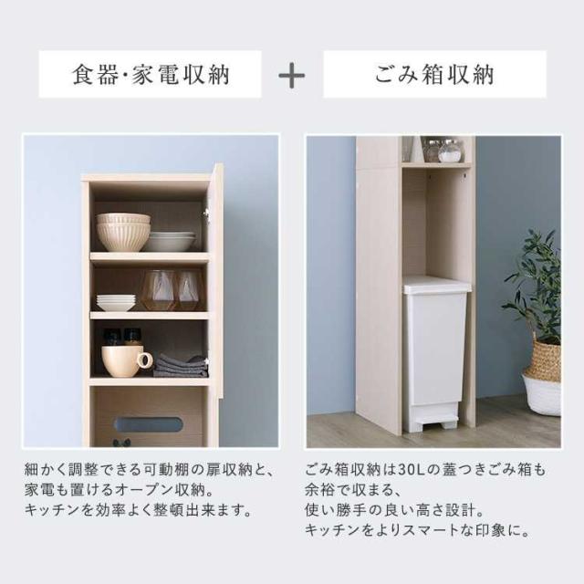 中途半端なすき間をピッタリ埋めてくれるスリムなゴミ箱上食器棚です。