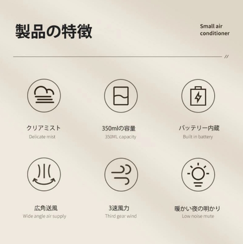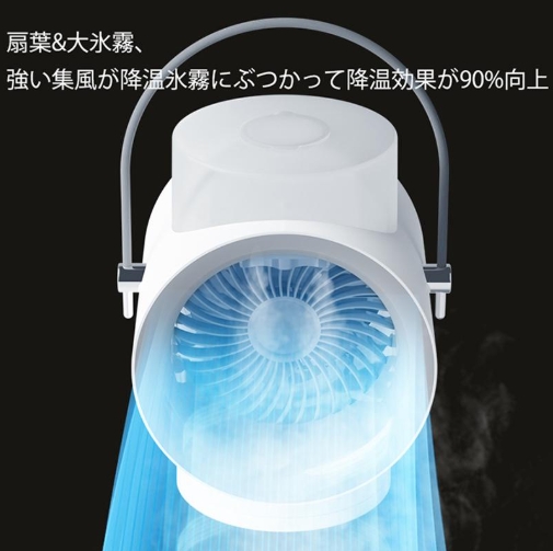 【噴霧機能】普通の扇風機より、噴霧機能を追加され、水が超音波で加工され、ナノミストになり、扇風と共に吹き出します。