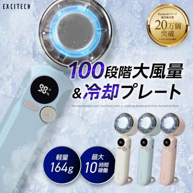 2025年モデル ハンディファン (最新瞬間冷却プレート) 100段階風量調節 手持ち扇風機 首掛け 静音 3000mAh 超軽量 ストラップ カラビナ付き EXCITECH プレゼント ギフト 送料無料