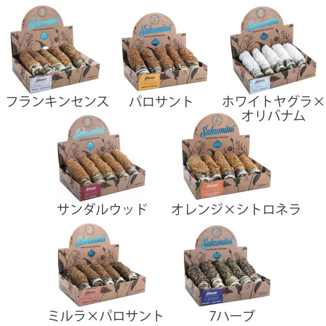 | 種類 | フランキンセンス、パロサント、ホワイトヤグラ×オリバナム、サンダルウッド、オレンジ×シトロネラ、ミルラ×パロサント、7ハーブ |