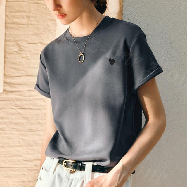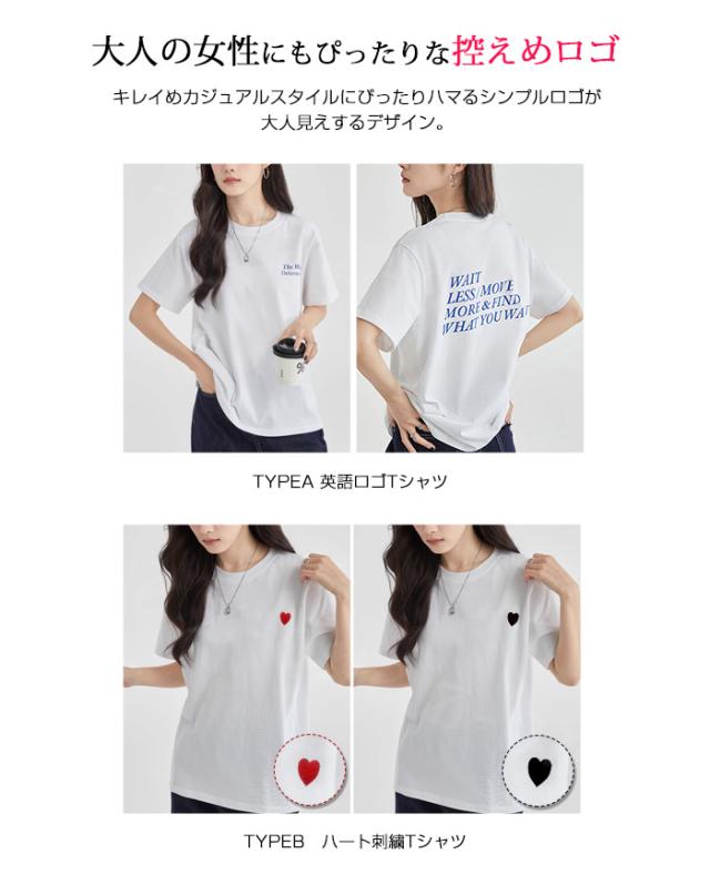 Tシャツ 半袖 tシャツ 冬新作 レディース ティーシャツ ラウンドネック ゆったり 無地 黒 白 パステルカラー オーバーサイズ ロゴ 刺繍 ハート ビッグtシャツ 大きいサイズ インナー トップス シンプル 大人かわいい ホワイトデー 卒業式