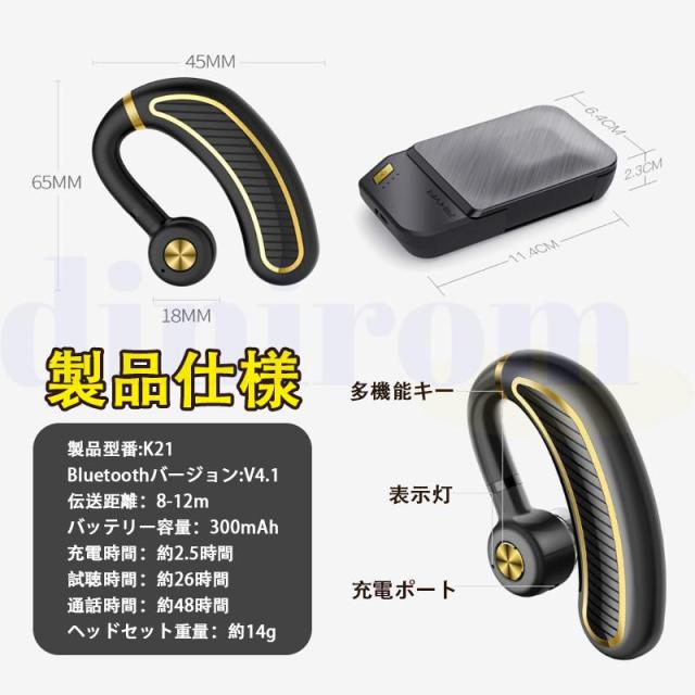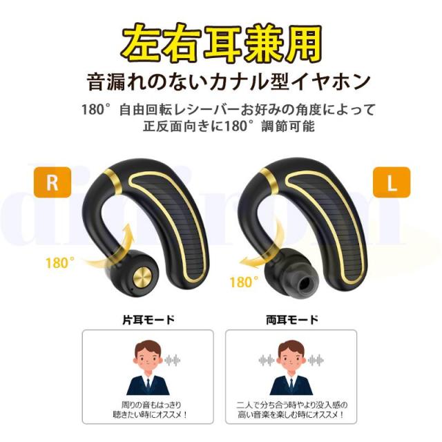 イヤホン片耳 左右耳兼用 耳掛け Bluetooth5.3 USB充電 270°回転 耳掛け式 長持ちイヤホン 30時間通話可能 マイク内蔵 ビジネス 通勤 通学 車用