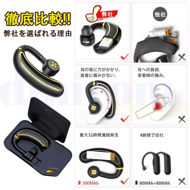 即日発送 イヤホン片耳 左右耳兼用 耳掛け Bluetooth5.3 USB充電 270°回転 耳掛け式 長持ちイヤホン 30時間通話可能 マイク内蔵 ビジネス 通勤 通学 車用