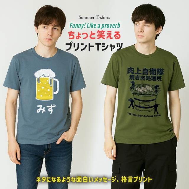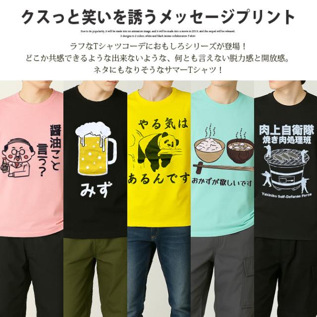 おもしろtシャツ メンズ 夏新作 半袖Tシャツ 面白い デザインプリントTシャツ 水ビール やる気はあるんです