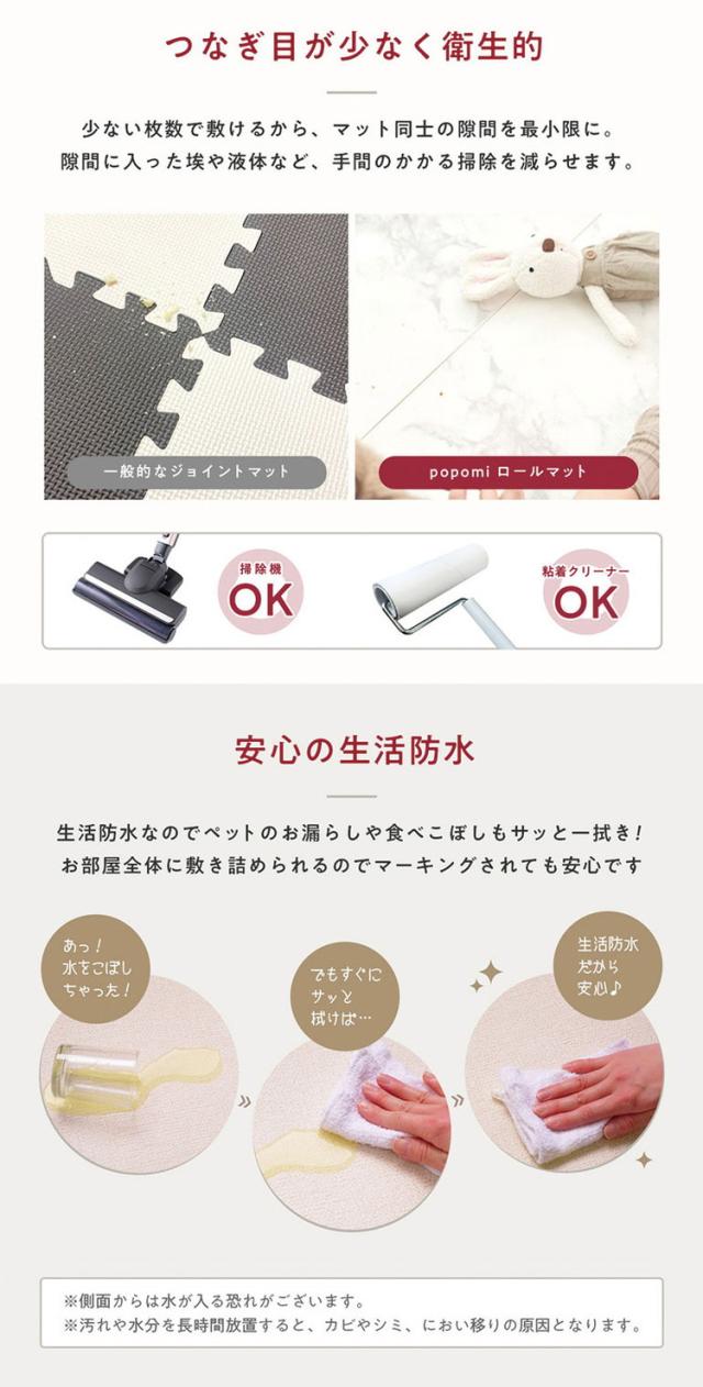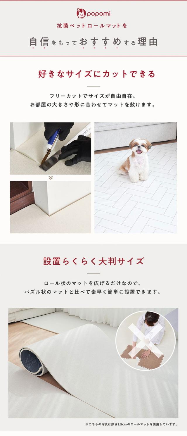 popomi ポポミ ペット用 ペットマット ペットプレイマット ロールマット クッションマット フロアマット ジョイントマット 犬 猫 防滑 PVC シームレス フリーカット マット 幅110cm 奥行300cm 0.8cm(