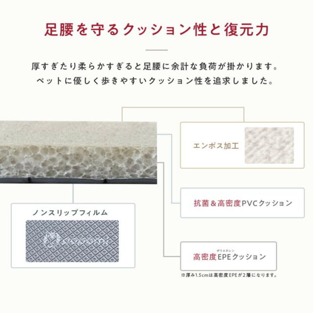 ・0.8cm、1.5cmの厚みでベッドや寝具からの飛び降りの際に掛かる関節への衝撃を緩和します