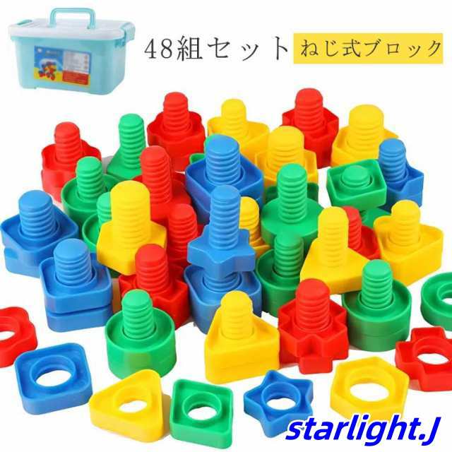大工さんごっこ ねじ式ブロック プラスチック製 知育玩具 組み立て 大工さん ねじ ネジ ナット 工具 組立 あそびセット 48組セット カラフル おもちゃ パズル 男の子 女の子 誕生日 誕生日プレゼント セット おもちゃ ギフト 贈り物 子供 DIY 3歳 4歳 5歳