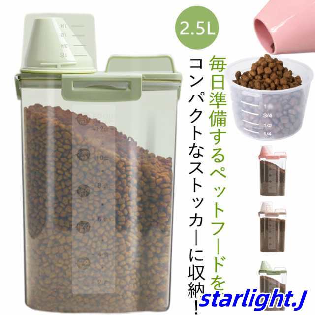 ドッグ 猫 ドッグフード 保存容器 犬 収納 キャットフード 餌入れ ペット 2.5L キャット ストッカー ペット ケース エサ入れ 保存 北欧 スリム 目盛り付き シンプル 密閉 大容量 防湿 計量カップ付 持ち運びやすい ペットフード