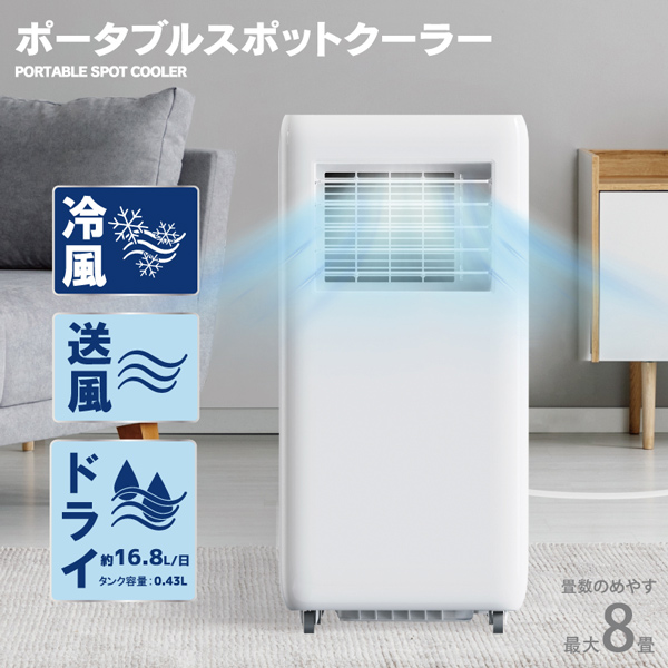 ポータブルクーラー 工事不要 窓パネル付き スポットクーラー 移動式エアコン 省エネ コンパクト 冷風機 除湿機能付き クーラー 寝室用 静音クーラー 賃貸 エアコン代替
