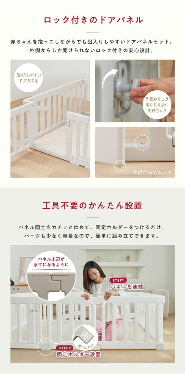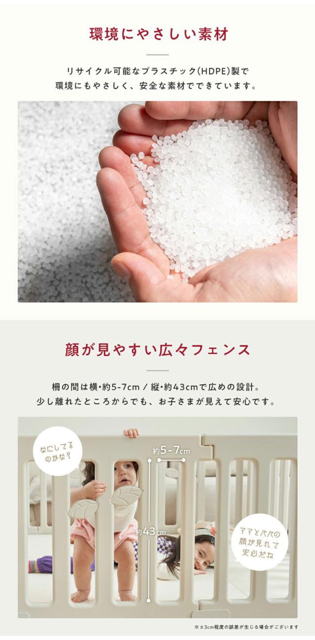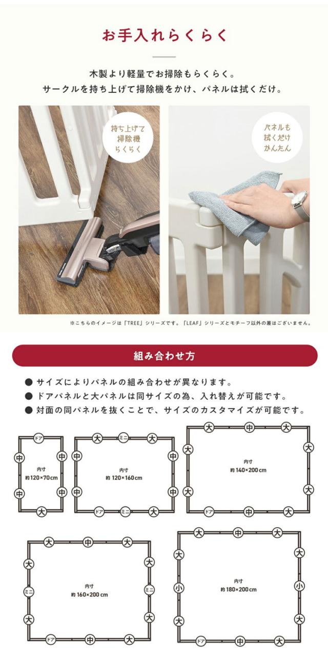popomi ポポミ ベビーサークル LEAF リーフ ハイタイプ 長方形 赤ちゃん ベビー 子ども 子供 キッズ 簡単 扉付き ドア付き パネル ベビーフェンス ベビーゲート プレイサークル 幅180cm 奥行200cm(