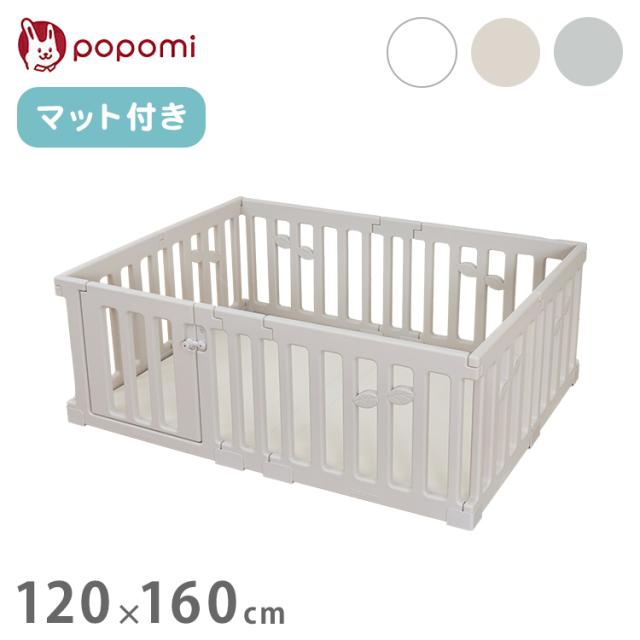 popomi ポポミ 【ベビーサークル マット セット】 ベビーサークル プレイマット LEAF リーフ ハイタイプ 長方形 赤ちゃん ベビー 子ども 子供 キッズ 簡単 扉付き ドア付き パネル 幅120cm 奥行160c