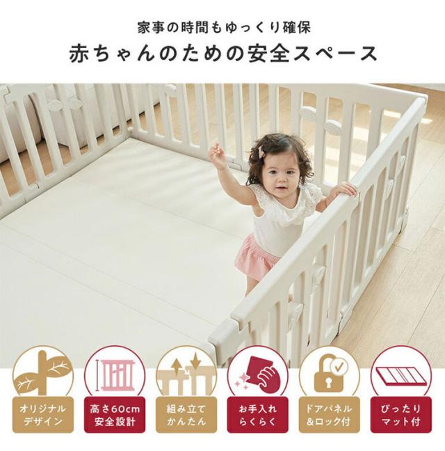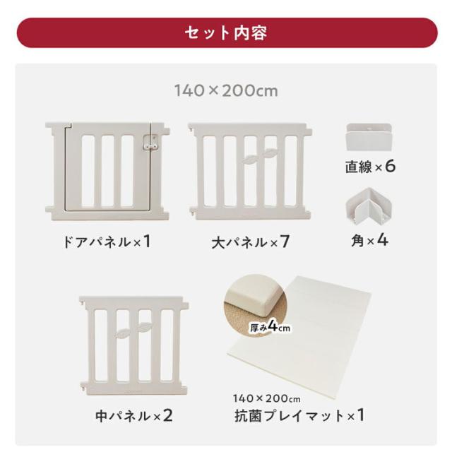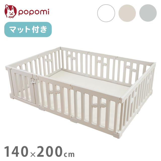 popomi ポポミ 【ベビーサークル マット セット】 ベビーサークル プレイマット LEAF リーフ ハイタイプ 長方形 赤ちゃん ベビー 子ども 子供 キッズ 簡単 扉付き ドア付き パネル 幅140cm 奥行200c