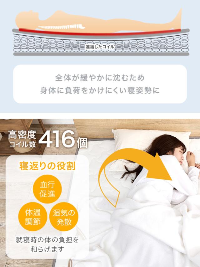 | 材質 | 主材:ボンネルコイル(コイル数:416) 張地:ポリエステル |