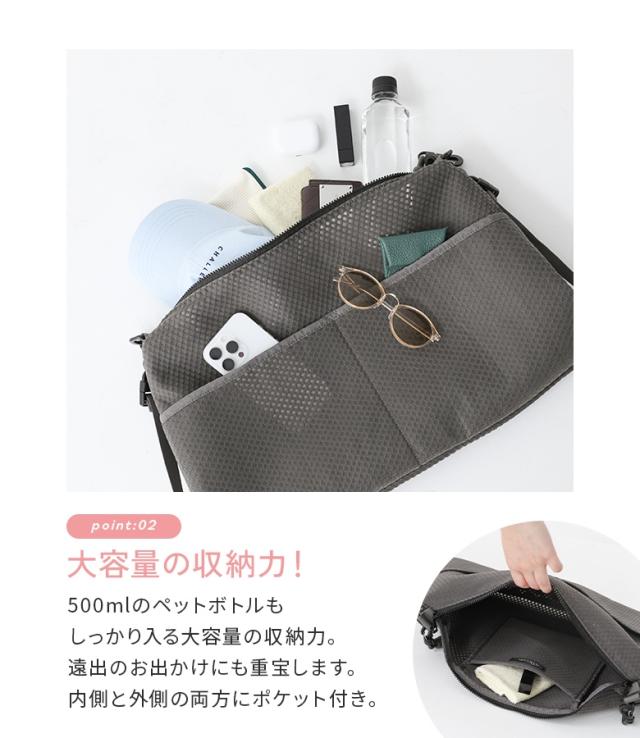 『洗えるメッシュショルダーバッグ』【メール便不可】【40】[バッグ レディース ショルダーバッグ メッシュ 洗える ペットボトル 大容量 収納力 ポケット 春 夏 秋 冬 オールシーズン]