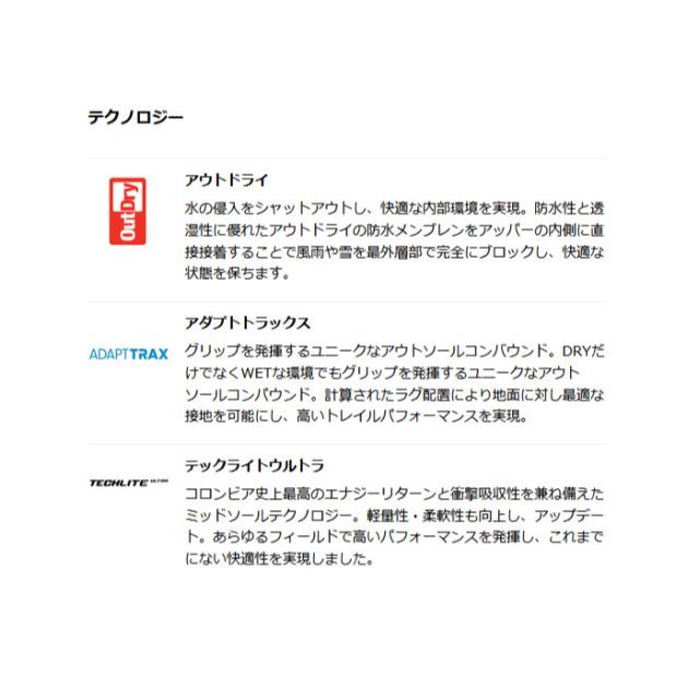 コロンビア史上最高のエナジーリターンと衝撃吸収性を兼ね備えたミッドソールテクノロジー。軽量性・柔軟性も向上し、アップデート。あらゆるフィールドで高いパフォーマンスを発揮し、これまでにない快適性を実現しました。