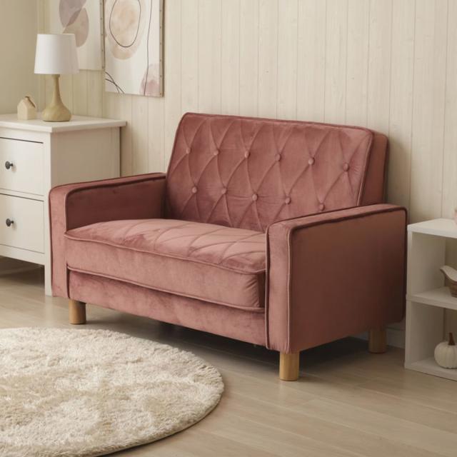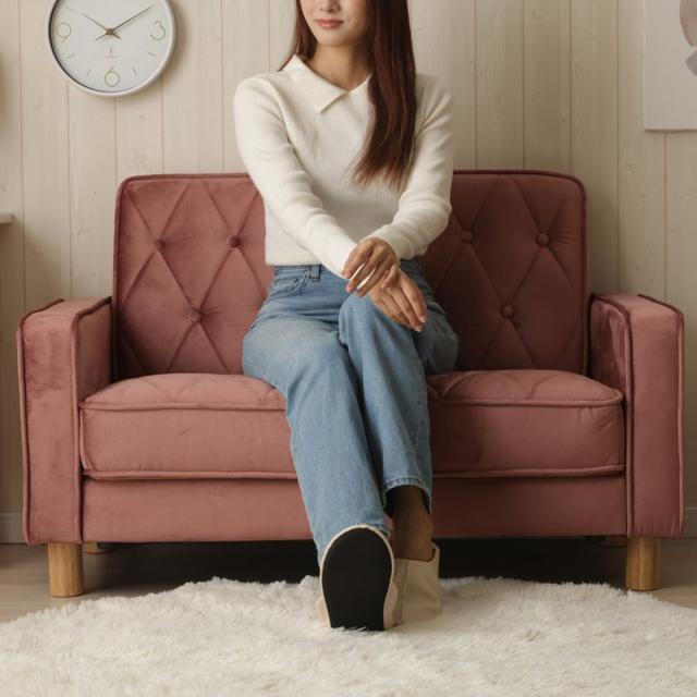 ベロア調生地を使用したソファです。落ち着いたくすみカラーがお部屋のアクセントになります。