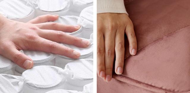 | クッション性抜群 座面はポケットコイルスプリングを使用しており、弾力性と復元力に優れています。身体のラインに沿って支えるため、包み込まれるようなフィット感を味わえます。また、へたりにくく長くご使用いただけます。 | 触り心地ふんわり オシャレなベロア調の生地でふんわりとしたキルト加工です。 |