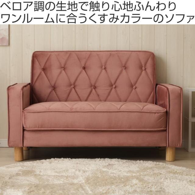ソファ 1人掛け 1.5人掛け 幅114cm コンパクト デザインソファ ( ソファー リビングソファ 省スペース 一人用 脚 取り外し ローソファ 肘掛け 簡単組立 キルティング ベロア おしゃれ ワンルーム )