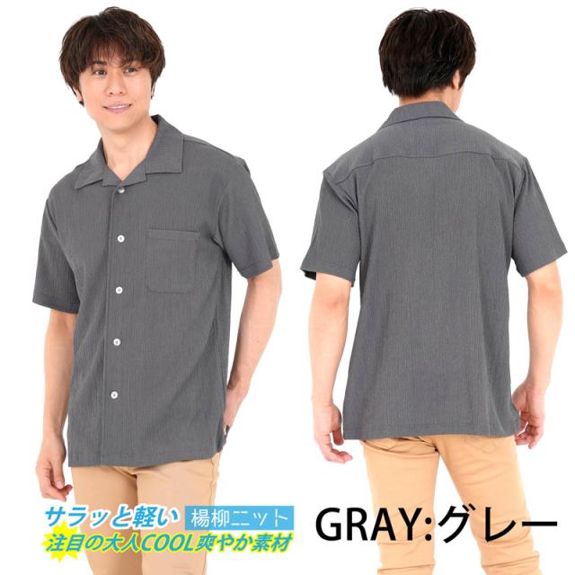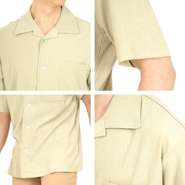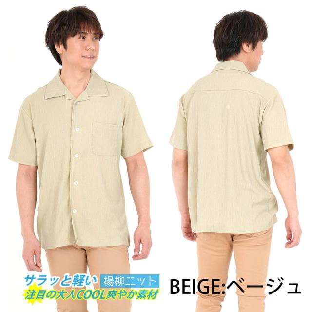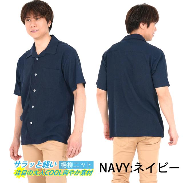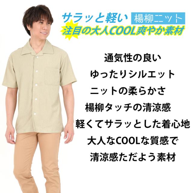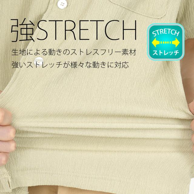 シャツ メンズ 半袖 ストレッチ 春 夏 秋 猛暑 部屋着 ルームウェア 作業着 レジャー アウトドア 海 楊柳 無地 開襟
