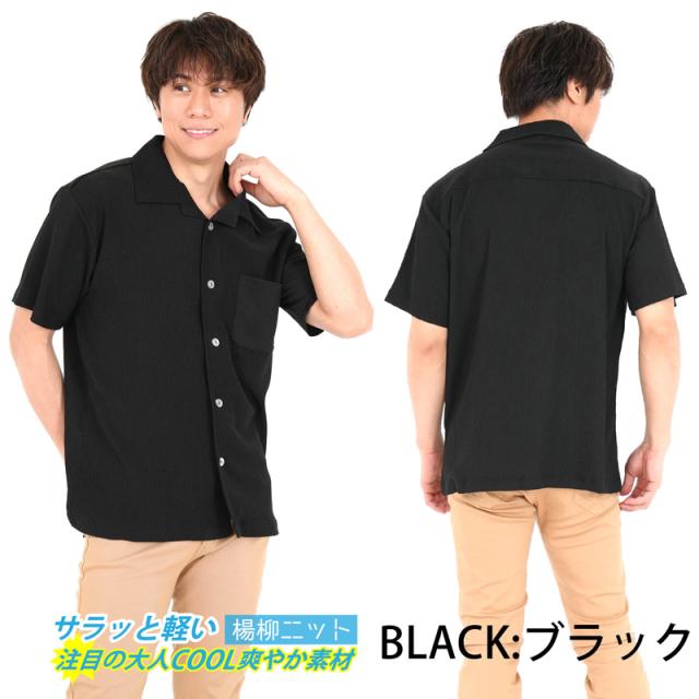 半袖カジュアルシャツ 楊柳 ニット メンズ 清涼 開襟 春 夏 ゆったり ブラック ネイビー グレー ベージュ ポケット付き