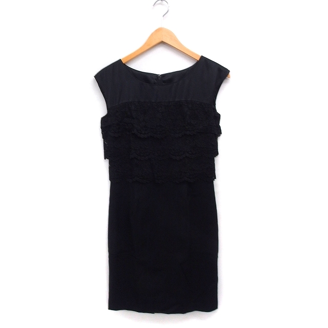【中古】ピンキー&ダイアン ピンダイ PINKY&DIANNE ティアードレース ワンピース ドレス ノースリーブ ひざ丈 ウール