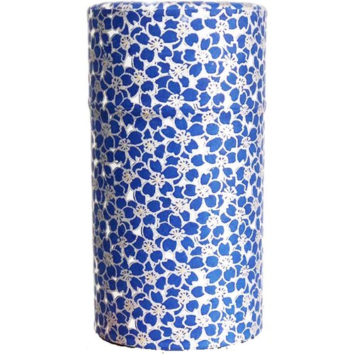 きつさこ 京都生まれの友禅紙茶缶 桜柄 茶葉の劣化を抑制する / 茶筒 茶缶 茶入れ 茶壷 保存容器 青 150g