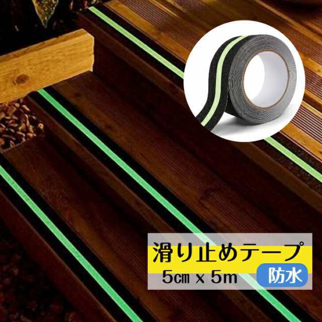 滑り止めテープ すべり止め 蓄光テープ テープ 蛍光 5cmx5m 階段 滑り止め 防水 最新型鉱物粒子 強力 階段 脚立 床 屋外 屋内 転倒防止