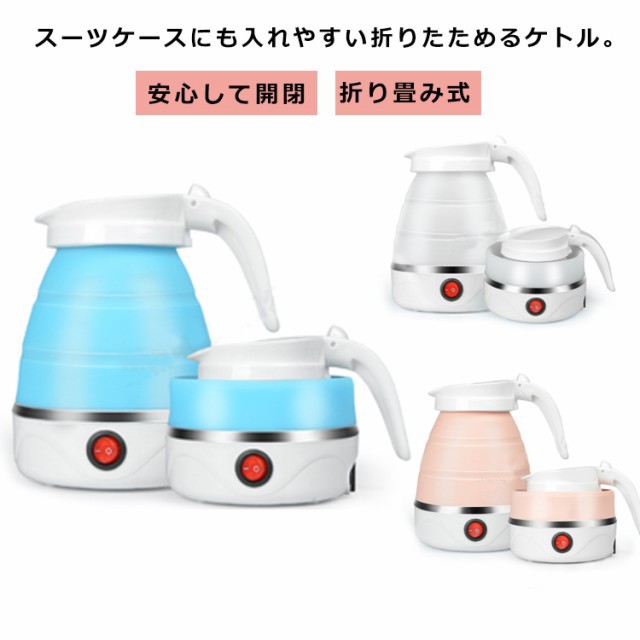 折りたたみケトル 電気ケトル 持ち運び 折り畳み式 ケトル トラベルケトル 旅行 出張 シリコン ケトル 600ml 小型 コンパクト 携帯 トラベル電気ケトル 保温ポット キャンプ アウトドア 車中泊 一人暮らし ホテル 入院 旅 便利グッズ
