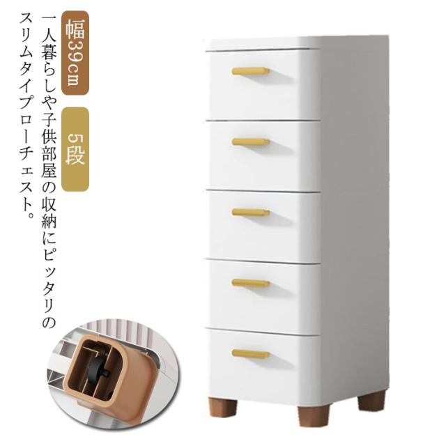 チェスト 収納ケース タンス 幅39 5段 リビングチェスト スリム 子供服 衣装ケース 収納ボックス 引き出し 一人暮らし 洗面所 隙間収納 押入れ収納 衣類収納 ほこりの入りにくい壁タイプ クローゼット 寝室 隠す収納 キッチンストッカー ワゴン プラスチック 組立品