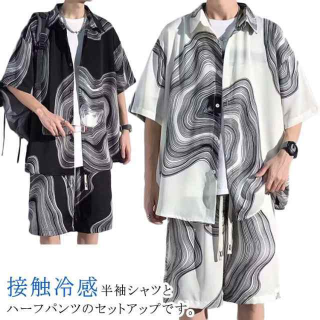 接触冷感 アロハシャツ セットアップ 上下セット 絞り染め ハーフパンツ メンズ 短パン 半袖シャツ ビーチ 涼しい 2点セット カジュアル 薄手 ショートパンツ Tシャツ 部屋着 ルームウエア 開襟シャツ 大きいサイズ ゆったり 軽量 夏 メンズファッション