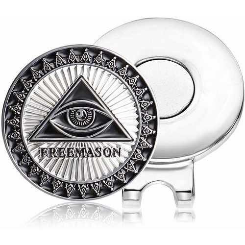 ゴルフマーカー ハットクリップ付き マグネット フリーメイソン エンブレム 合金製 ゴルフコンペ 景品 プレゼント E0009