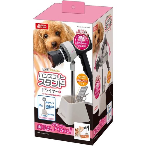 手持ちのドライヤーを立てられるスタンドです。角度180度無段階調節可能で、乾かしやすい角度をキープ! お手入れ用品がサッととれる、収納スペースつき。分解できて収納もらくらく。 ■対応ドライヤー ドライヤー直径 約60〜72mmまで対応